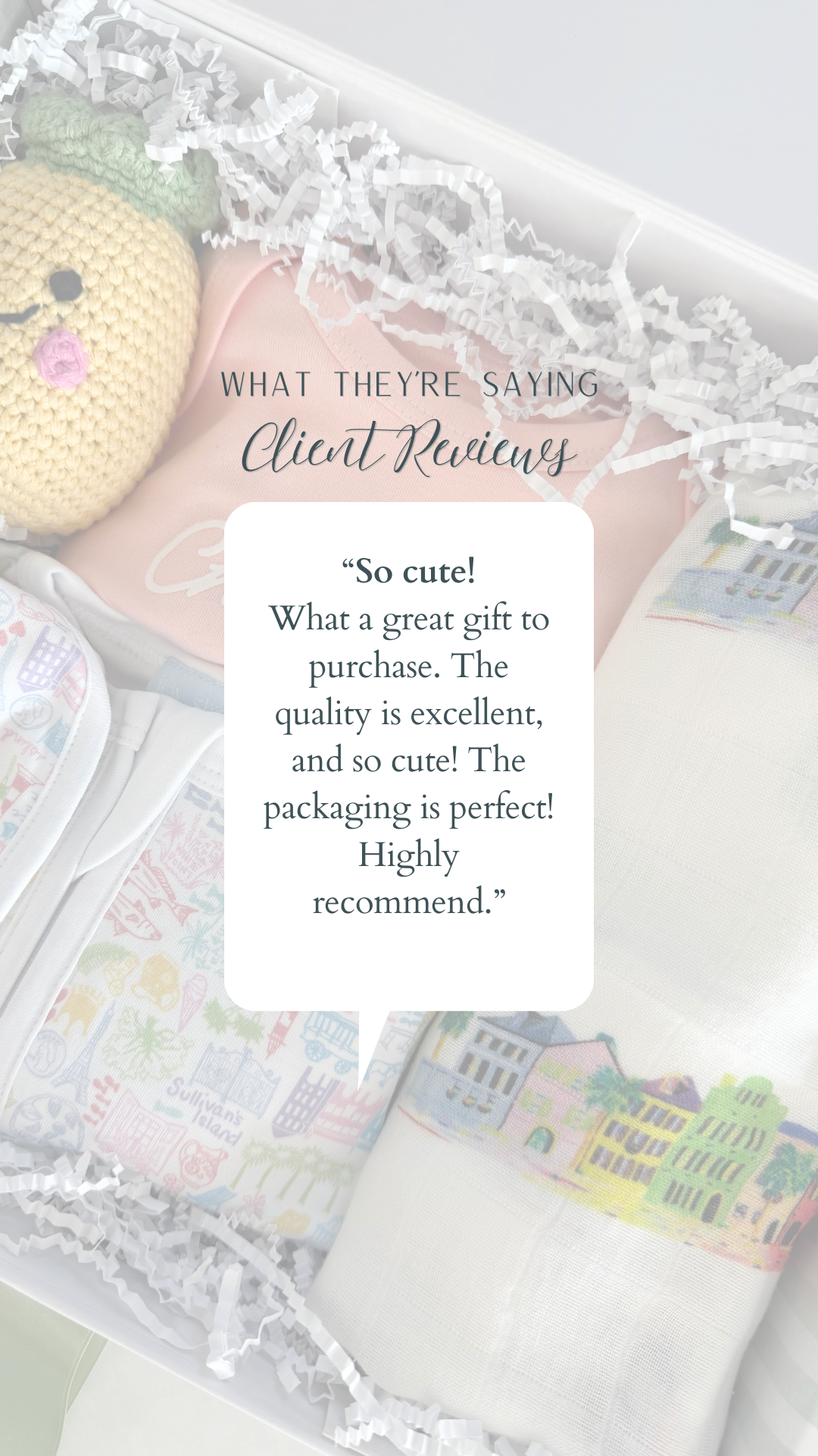 The Charleston Box was the perfect gift to send to my friend who is a mom-to-be with her first baby girl! The items were not only adorable, but great quality and packaged in a beautiful box. Annie even hand wrote a card for me and added it to the box! Excellent service and timely shipping. I will be using these boxes for every baby gift from now on!